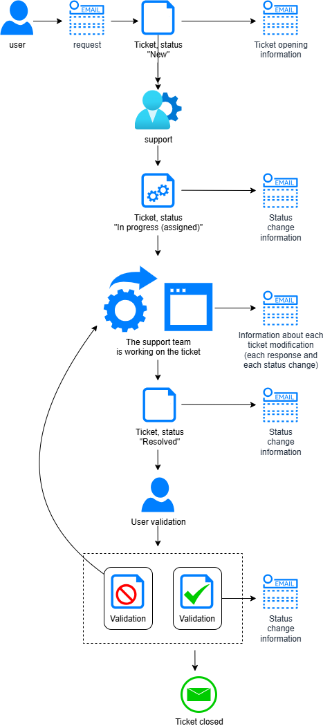 These statuses allow for efficient ticket lifecycle management, ensuring clarity for both users and the support team.